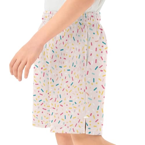 Colorful Sprinkles Athletic Shorts with Zipper Pockets, Youth Boys Athletic Running Shorts for Summer 4