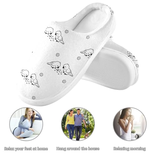 silky Cute Bird Flowers Floral Black and White House Slippers for Woman Men,Fuzzy Slippers Cozy Memory Foam House Shoes Gifts for Women Men Size 14/15 2302111