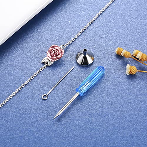 Rose Cremation Urn Jewelry for Ashes - 925 Sterling Silver Memorial Keepsake Ring Bracelet Necklace Gift for Women, Bereavement Gift for A Loss Of the Loved One 6