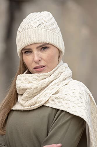 Aran Crafts Women's Knit silky Heart Pattern Scarf (100% Super Soft Merino Wool)
