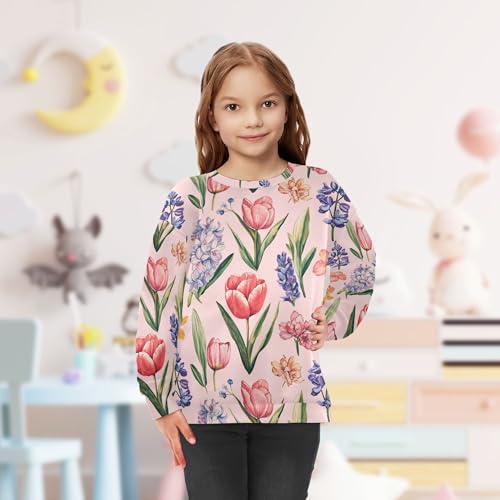 JUNZAN Spring Flowers Tulips Orchid Pink Big Girls Sweatshirt Hoodie Long Sleeve Hoodie for Boys Camping 4T