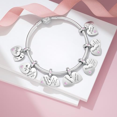 JIAYIQI Mother Sister Daughter Wife Charms Fit Charms Bracelet Necklace with Double Heart appreciate Charms 925 Sterling Silver Beads for Women Jewelry