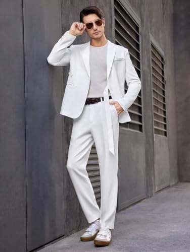 • SUIT FEATURE - The solid color suit jacket features a lapel collar, 2 buttons for adjusting the fit, a longer strap at the button for a sharper look, set-in pockets on both sides, and single vent. The pants are flat front and straight leg pants.