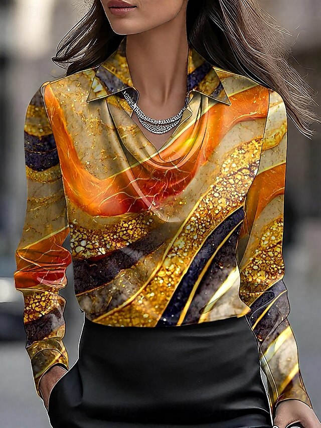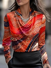 Why Choose Women's Shirt Dressy Tops Formal Work Shirt Graphic Geometric Abstract Elegant sleek Casual Long Sleeve Cowl Neck Work Party Evening Wear Daily Ruched Draped Red Blue Purple Orange Green Fall?