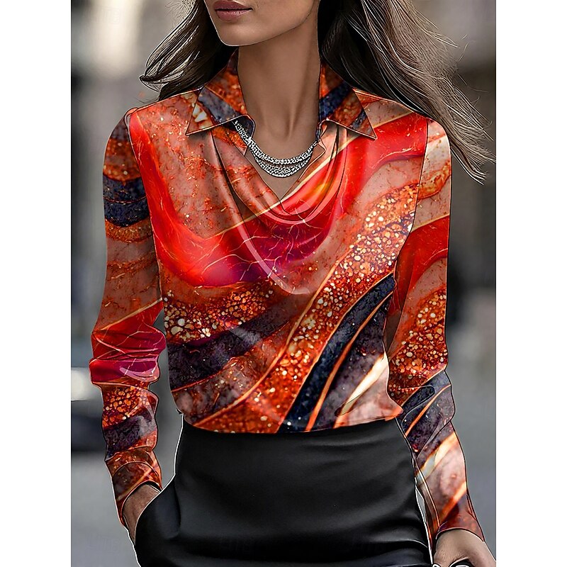 This Women's Shirt Dressy Tops Formal Work Shirt Graphic Geometric Abstract Elegant sophisticated Casual Long Sleeve Cowl Neck Work Party Evening Wear Daily Ruched Draped Red Blue Purple Orange Green Fall combines elegant design with practical functionality. Every detail has been carefully considered to ensure you get the best possible experience. The superior construction means this product will serve you well for years to come.