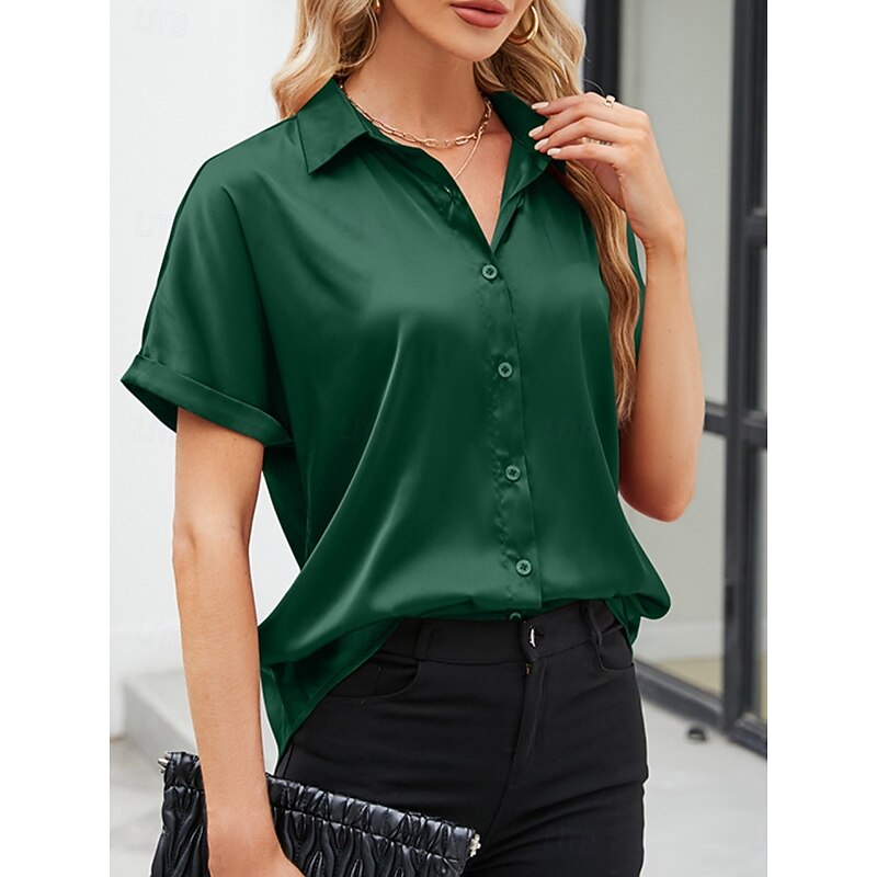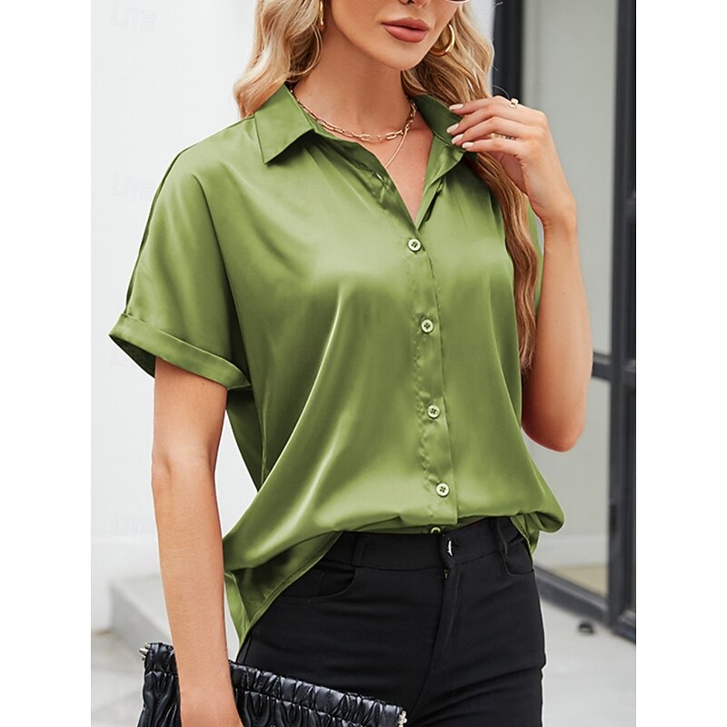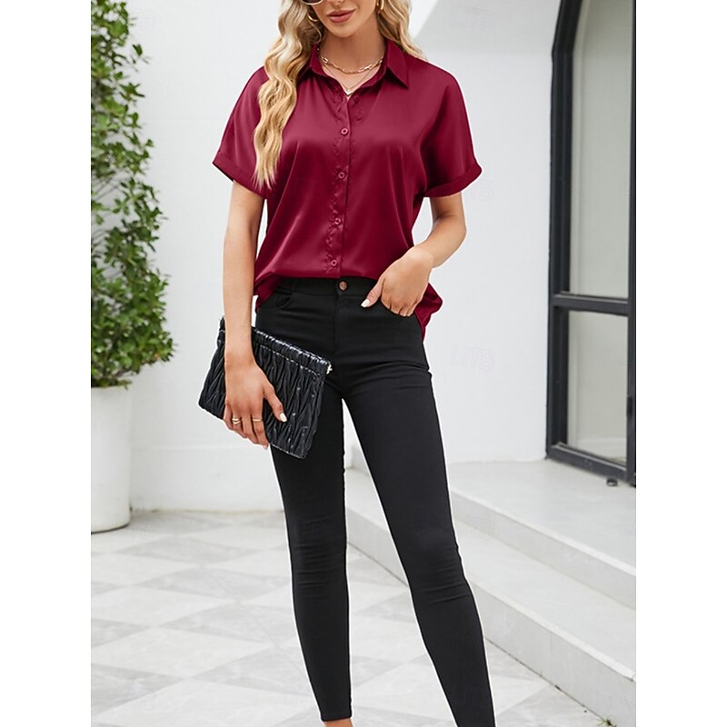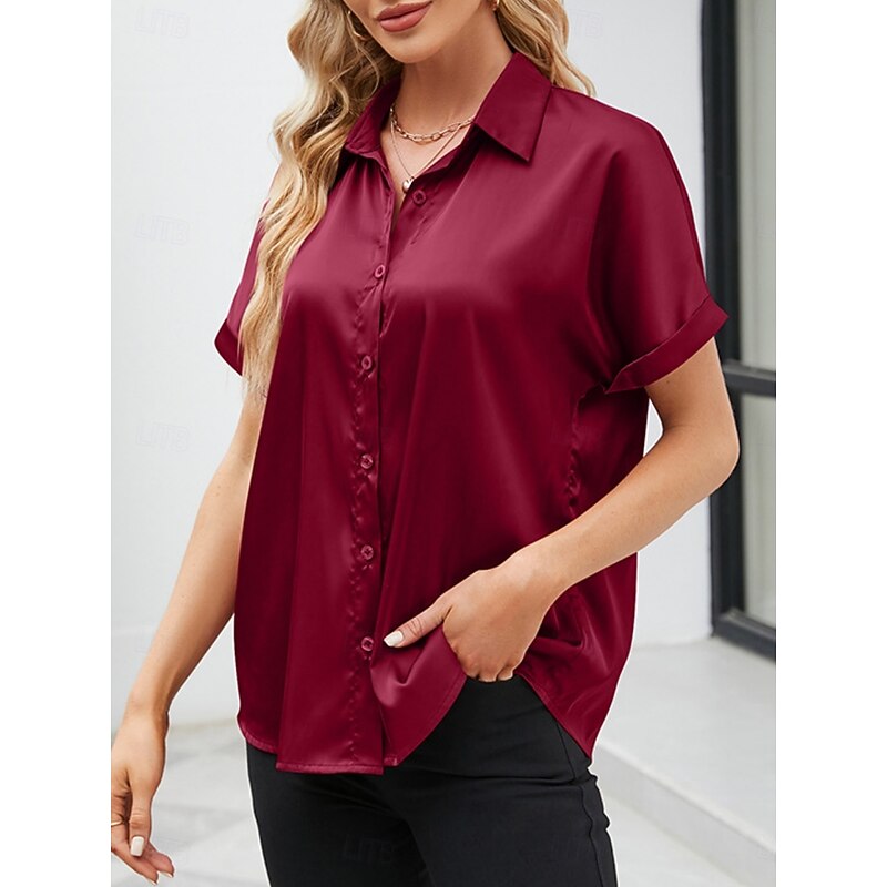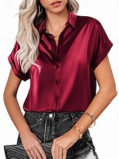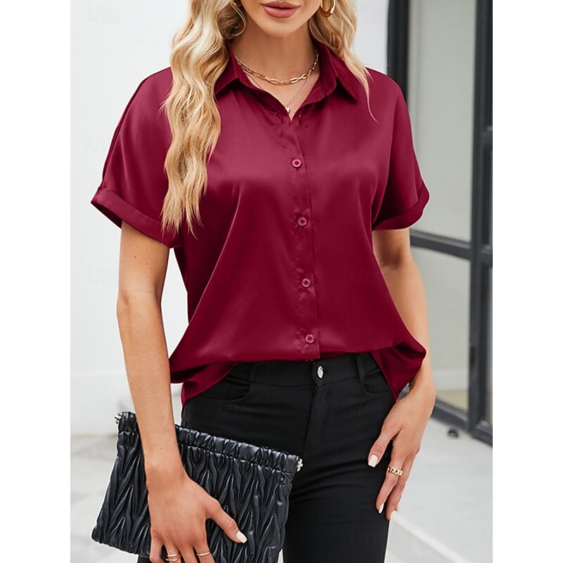 This Women's Shirt Elegant Dressy Satin Solid Color Business new-age Casual Short Sleeve Shirt Collar Regular Tops Work Formal Wear Buttons Wine Summer Spring combines elegant design with practical functionality. Every detail has been carefully considered to ensure you get the best possible experience. The top-grade construction means this product will serve you well for years to come.