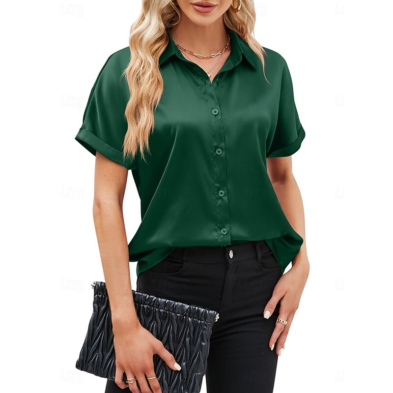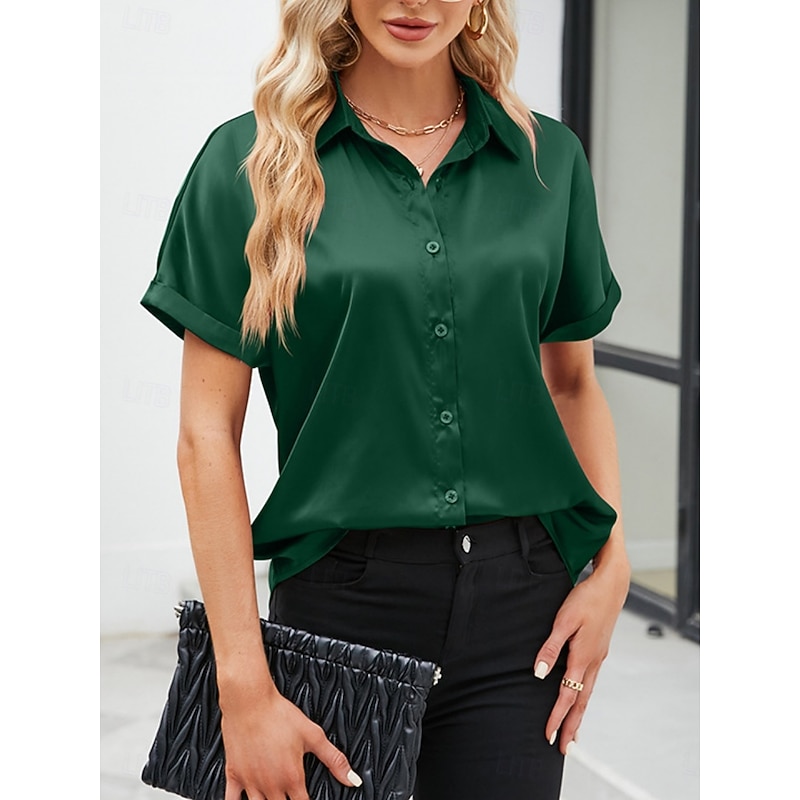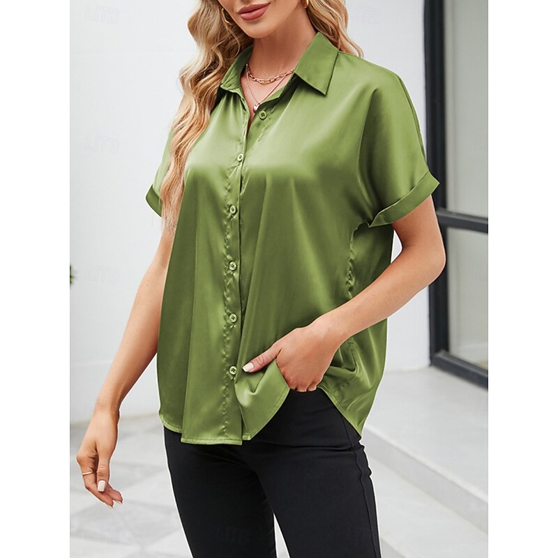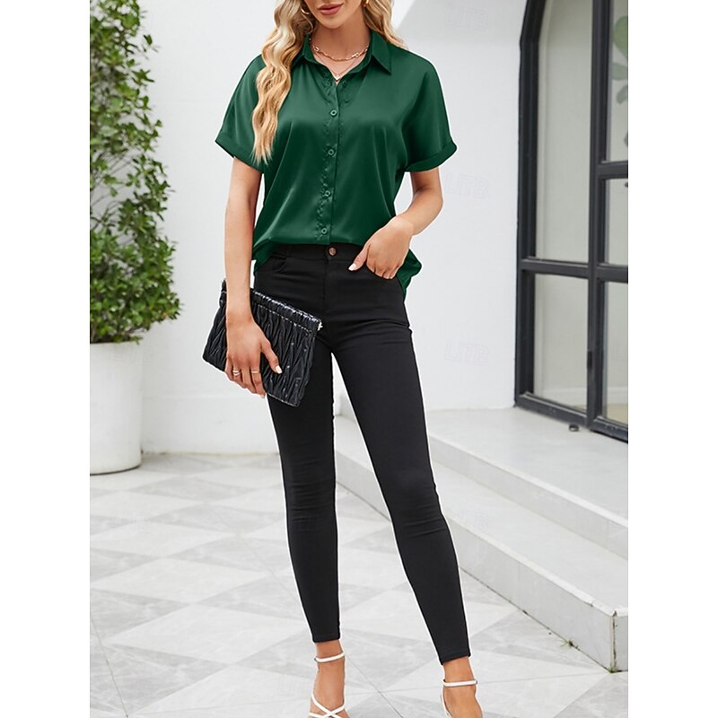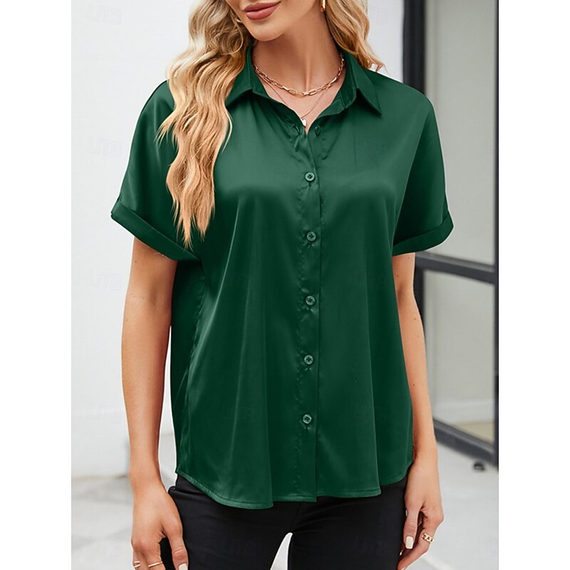 This Women's Shirt Elegant Dressy Satin Solid Color Business new-age Casual Short Sleeve Shirt Collar Regular Tops Work Formal Wear Buttons Wine Summer Spring combines elegant design with practical functionality. Every detail has been carefully considered to ensure you get the best possible experience. The top-grade construction means this product will serve you well for years to come.