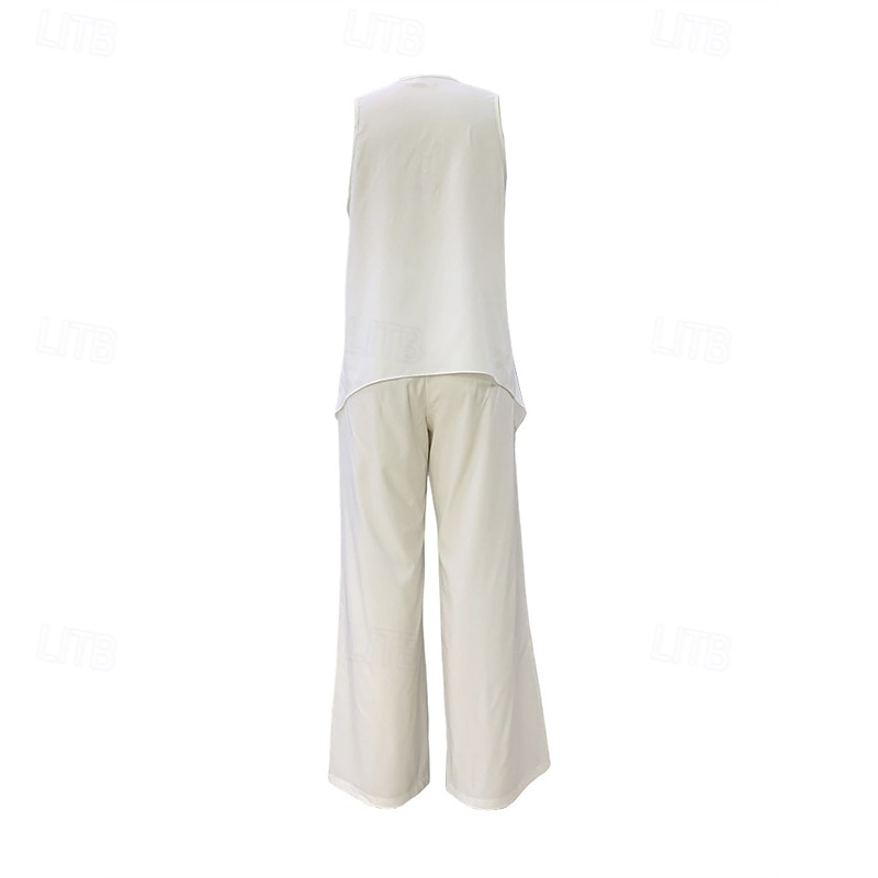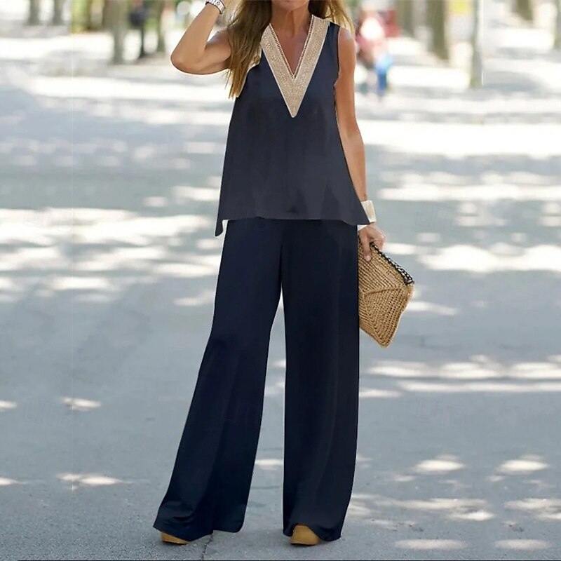 Why Choose Women's Fashion Business Vest Camis Bolero Top Wide Leg Pants Pants Trousers Sleeveless V Neck Color Block Patchwork Outdoor Daily Wear Black White Navy Blue Summer Regular Fit?