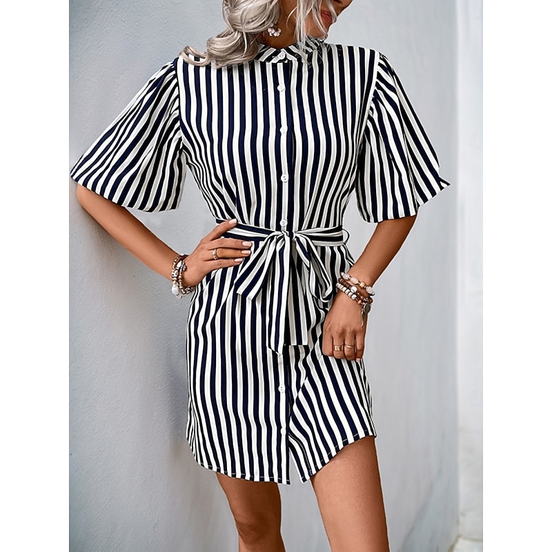 This Women's Mini Dress Shirt Dress Casual Dress A Line Dress contemporary Casual Vacation Daily Regular Fit Floral Short Sleeve Shirt Collar Navy Blue Summer combines elegant design with practical functionality. Every detail has been carefully considered to ensure you get the best possible experience. The top-grade construction means this product will serve you well for years to come.