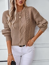 Highlights Sweater Highlights [Fabric] : Expertly crafted from high-quality polyester with a ribbed texture, this women's sweater offers a comfortable and stretchy fit for ultimate ease throughout the day. The knit design ensures warmth and durability, making it a perfect addition to your fall and winter wardrobe. [Fit] : Featuring a form-fitting silhouette, this sweater is designed to flatter the body's natural curves while remaining suitable for layering. Its ribbed cuffs and hem deliver a snug and cozy fit, enhancing the overall structural integrity of the garment. [Design Highlights] : The sweater is designed with a classic cable knit pattern for added texture and a solid, plain color that exudes modern elegance. The crew neck provides a timeless look, while the ruched detailing adds a touch of sophistication to the everyday style. [Occasions] : Suitable for a variety of settings, this sweater transitions smoothly from daily wear to work environments. Whether paired with casual jeans for a laid-back outing or combined with more formal attire for the office, it effortlessly complements any ensemble, making it a versatile staple for the cooler seasons. [Size Range] : Available in a range of sizes from S to XL, this sweater accommodates various body types, ensuring a comfortable and fashionable fit for many. Perfect for everyday use. supreme materials and excellent craftsmanship ensure long-lasting durability.