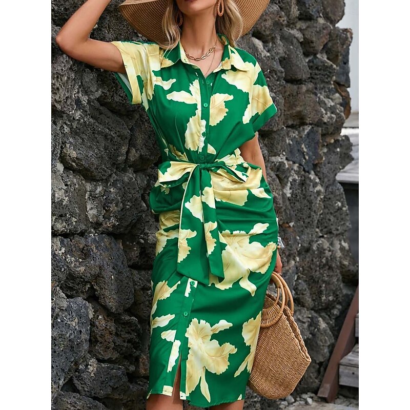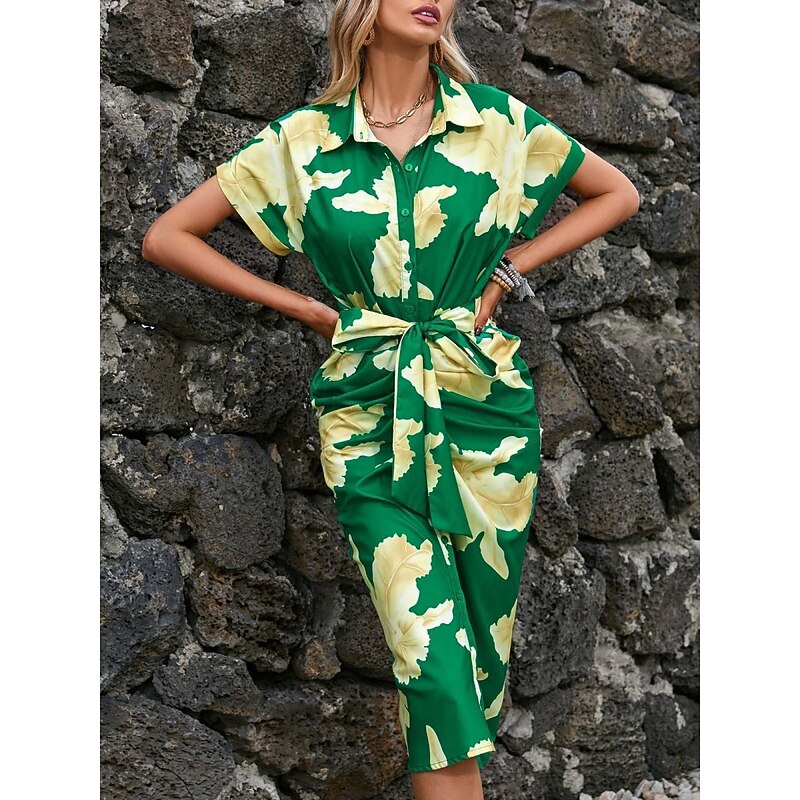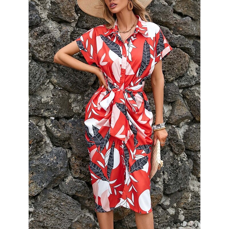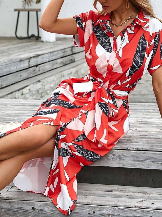 This Women's Midi Dress Casual Dress A Line Dress contemporary Casual Vacation Daily Regular Fit Floral Leaf Short Sleeve Shirt Collar Red Green Summer combines elegant design with practical functionality. Every detail has been carefully considered to ensure you get the best possible experience. The top-grade construction means this product will serve you well for years to come.