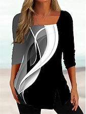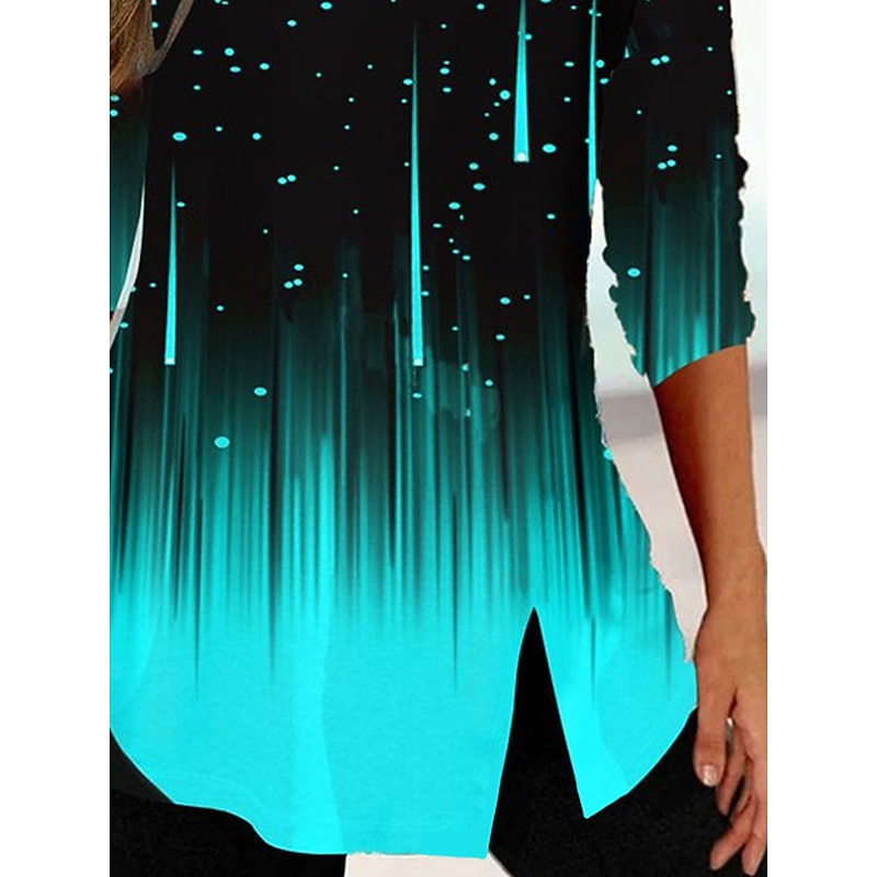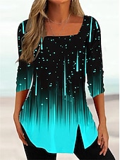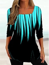 More information about Women's Plus Size T shirt Tee Color Gradient Black Blue Green Print 3/4 Length Sleeve Daily Weekend Basic Square Neck Regular Fit