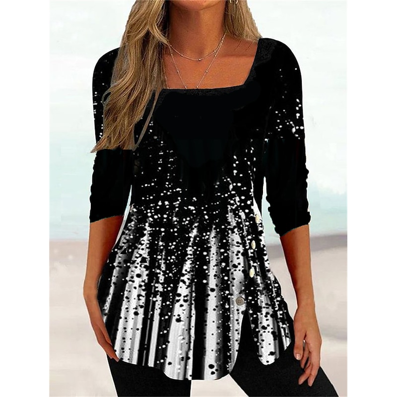 must-have ! Women's Plus Size T shirt Tee Color Gradient Black Blue Green Print 3/4 Length Sleeve Daily Weekend Basic Square Neck Regular Fit