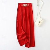 More information about Women's Dress Pants Wide Leg Pants Trousers Fashion Streetwear Full Length High Waist Plain Breathability pleasant Street Daily Wear Going out Black Red Blue Orange Spring Fall Regular Fit