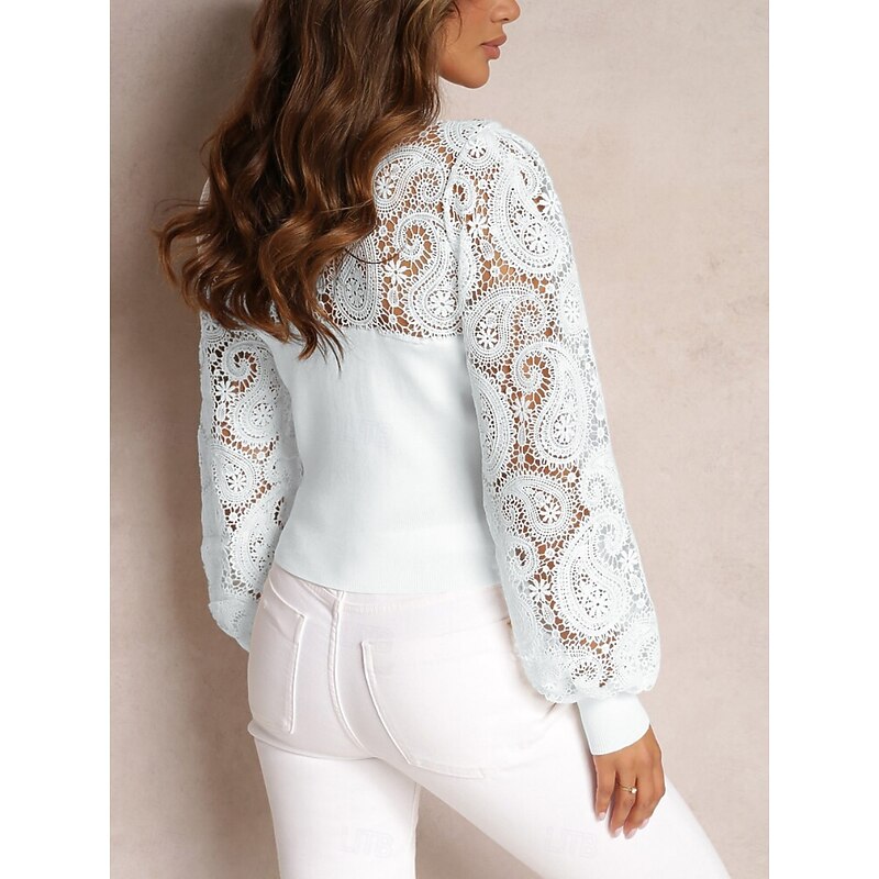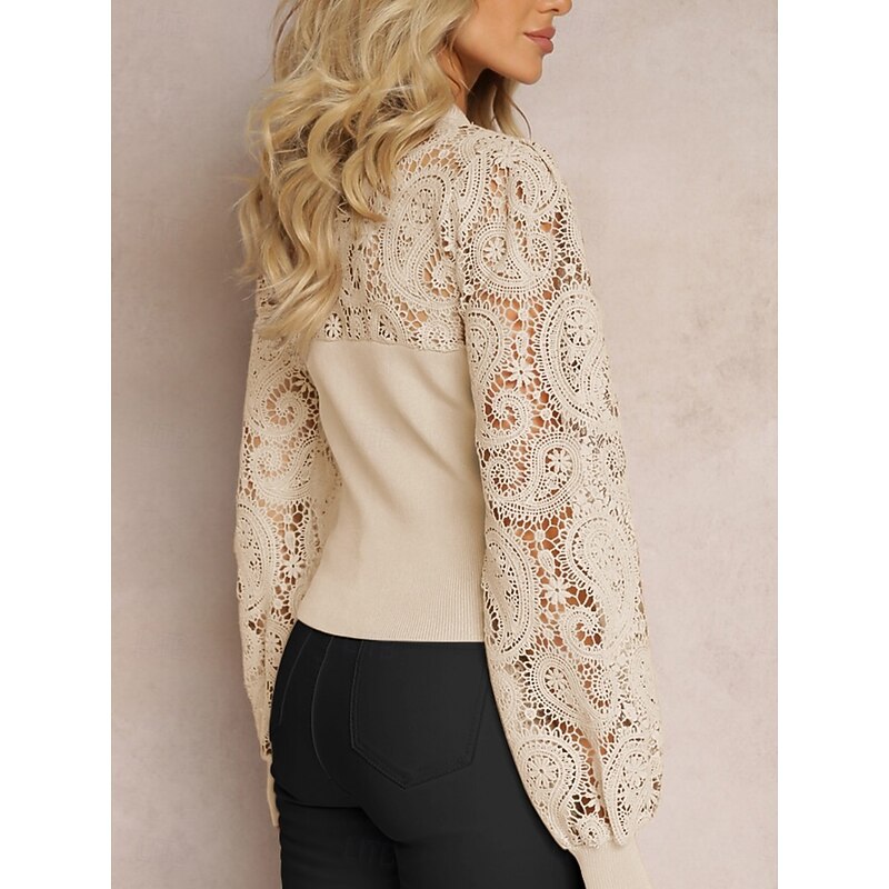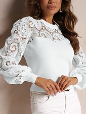 This Women's Shirt Boho Shirt Blouse Solid Color Business new-age Casual Long Sleeve Crew Neck Regular Tops Work Formal Wear Lace White Beige Summer Spring combines elegant design with practical functionality. Every detail has been carefully considered to ensure you get the best possible experience. The supreme construction means this product will serve you well for years to come.