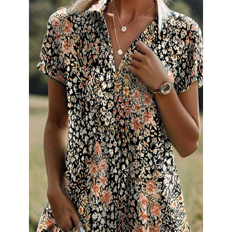 More information about Women's Ditsy Floral Lapel Long Dress Maxi Dress Short Sleeve Summer Spring