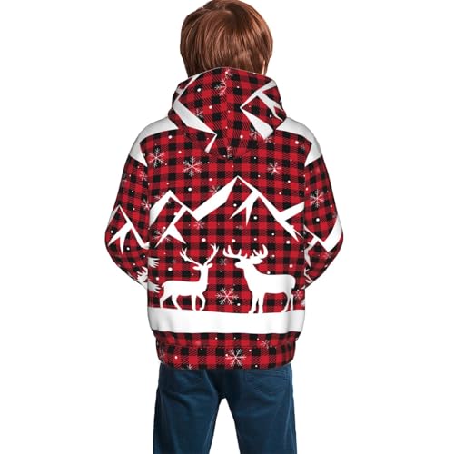 Christmas Buffalo Plaid Kids Pullover Hoodies Boys Sweatshirts Girls Athletic Clothes with Pocket