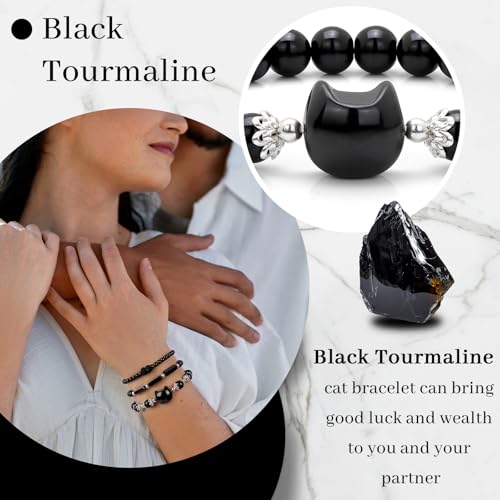 3Pcs Money Attraction Cat Bracelet - Black Obsidian Women Bracelets -Wealth Prosperity Abundance Stone Bead Bracelet,Crystal Spiritual Cute Protection Stretch Bracelet,Good Luck Feng Shui Bracelets For Women Gifts 4