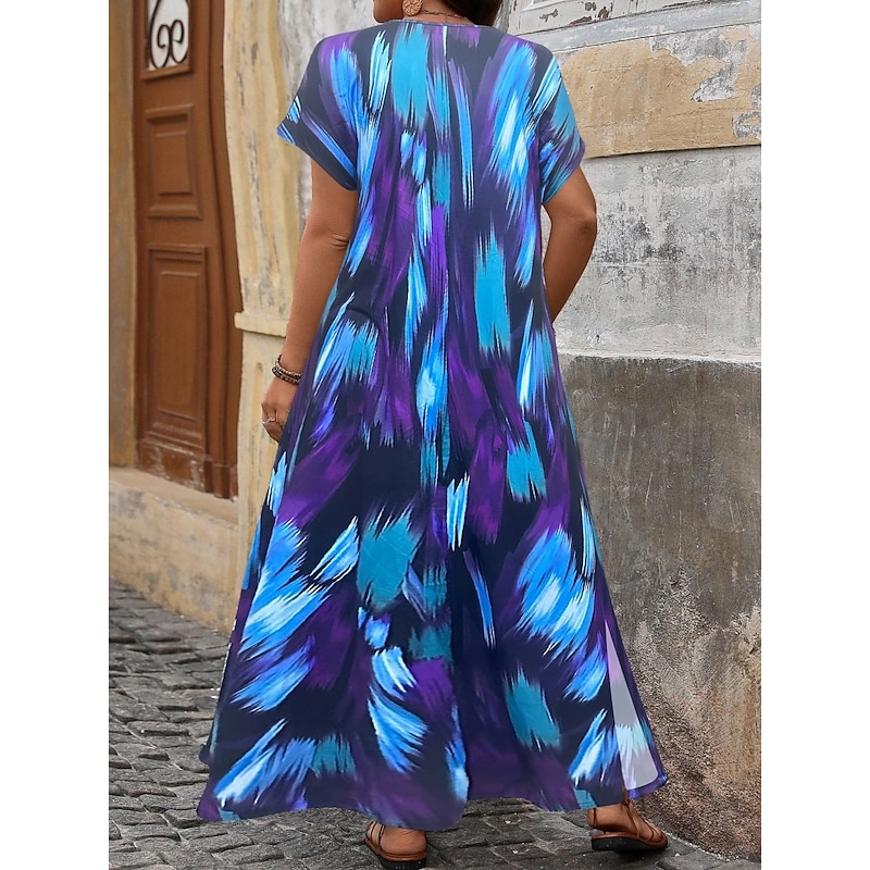 More information about Women's Maxi Dress A Line Dress Casual Outdoor Beach Loose Fit Stripe Short Sleeve V Neck Pink Red Blue Purple Summer Spring