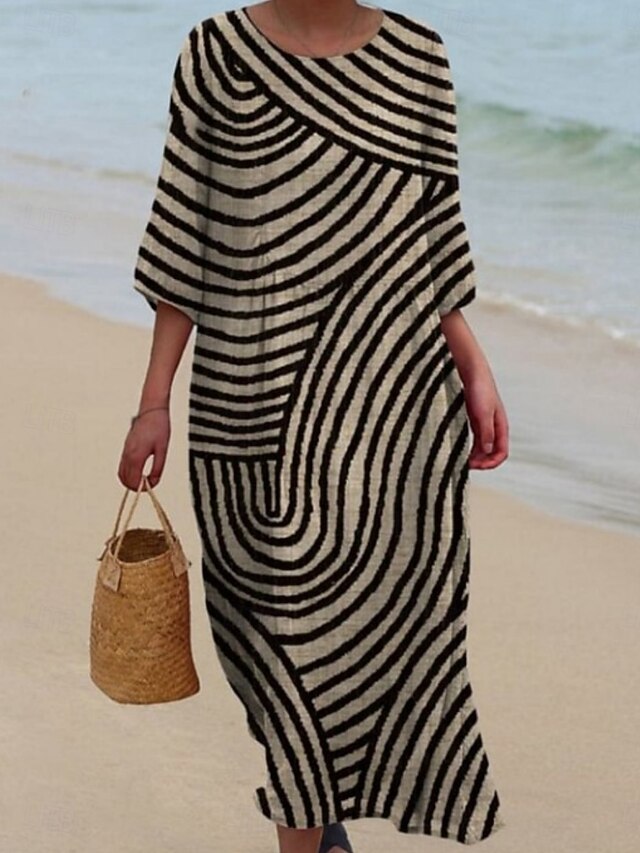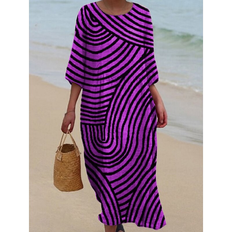 This Women's Midi Dress Casual Dress Print Dress Fashion up-to-date Daily Beach Weekend Regular Fit Line 3/4 Length Sleeve Crew Neck Red Blue Purple Green Spring Fall combines elegant design with practical functionality. Every detail has been carefully considered to ensure you get the best possible experience. The superior construction means this product will serve you well for years to come.