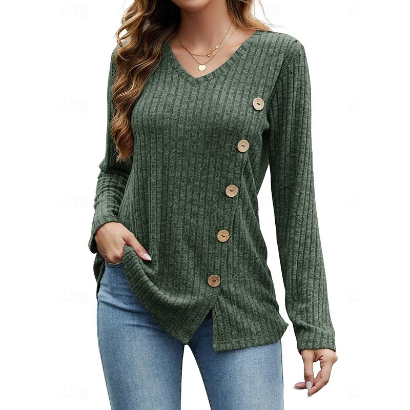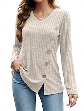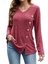This Women's Blouse Solid Color sophisticated Casual Long Sleeve V Neck Regular Tops Daily Buttons Red Blue Green Apricot Spring Fall Winter combines elegant design with practical functionality. Every detail has been carefully considered to ensure you get the best possible experience. The superior construction means this product will serve you well for years to come.