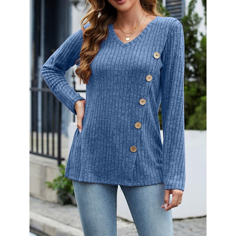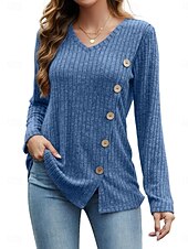 Why Choose Women's Blouse Solid Color sleek Casual Long Sleeve V Neck Regular Tops Daily Buttons Red Blue Green Apricot Spring Fall Winter?