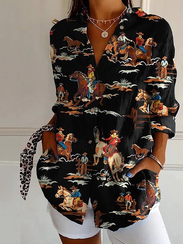 This Women's Shirt Blouse Flower new-age Casual Long Sleeve Shirt Collar Regular Tops Holiday Going out Buttons Print Black Navy Blue Orange Green Gray Summer combines elegant design with practical functionality. Every detail has been carefully considered to ensure you get the best possible experience. The top-grade construction means this product will serve you well for years to come.