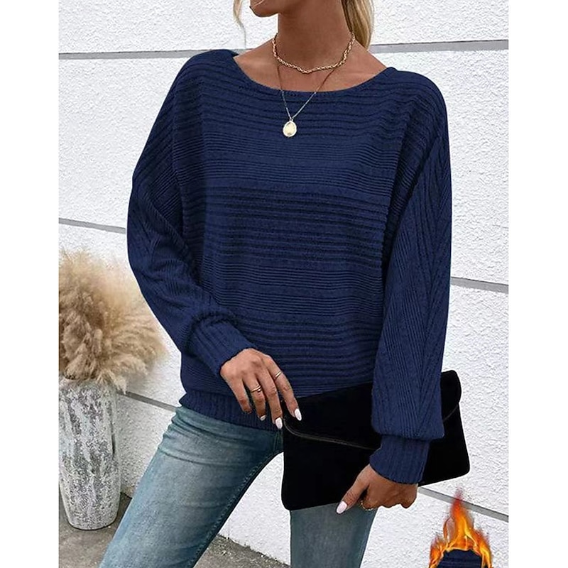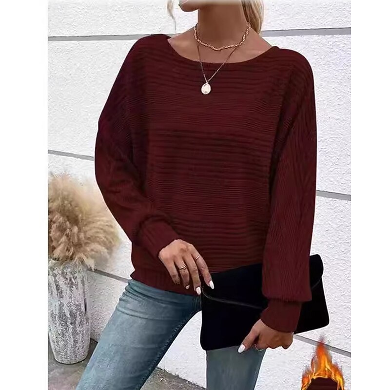 Highlights [Fabric] : Crafted from a high-quality polyester blend, this women's tunic offers a soft, stretchy feel that ensures comfort and ease of movement. The breathable knit is perfect for transitional seasons, providing warmth without being too heavy. [Fit] : Featuring a relaxed, loose fit, this tunic is designed with an emphasis on comfort and an effortless, casual style. Its oversized silhouette flatters various body shapes, making it a versatile addition to any wardrobe. [Design Highlights] : The tunic showcases a chic batwing sleeve and a iconic boat neck that exude elegance and sophistication. The ribbed cuffs add texture and structure to the design, while the solid color ensures timeless appeal. [Occasions] : Ideal for work settings, casual outings, and layering during spring, fall, and winter, this tunic combines style and practicality. Its sophisticated yet relaxed design makes it suitable for a wide range of occasions, from office wear to leisurely weekends. [Size Range] : Available in sizes S to 2XL, this tunic caters to a diverse size range, ensuring a relaxing fit for different body types. The variety of colors including blue, red, gray, and khaki, provides ample choices to suit personal style preferences.