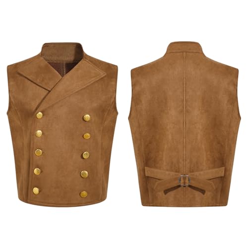 renvena Boys Victorian Suede Vest Steampunk Gothic Medieval Waistcoat Stand Collar & Double Breasted 6