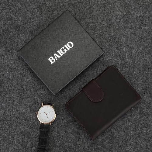 BAIGIO Genuine Leather Wallets for Men Trifold Wallet Card Holder Men Wallet RFID Blocking Coin Pocket 6
