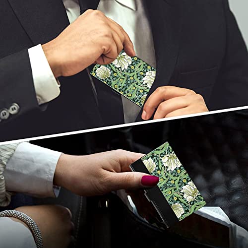 must-have ! William Morris White Flowers, Yellow Flowers, Green Foliage Leaves Business Card Holder Leather, Slim Credit Card Case Stainless Steel Wallet for Women and Men Unisex Business Card Holder