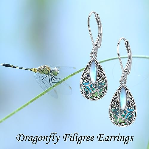 Dragonfly Filigree Earrings Sterling Silver Teardrop Abalone Shell Drop Dangle Earrings Filigree Leverback Earrings Jewelry