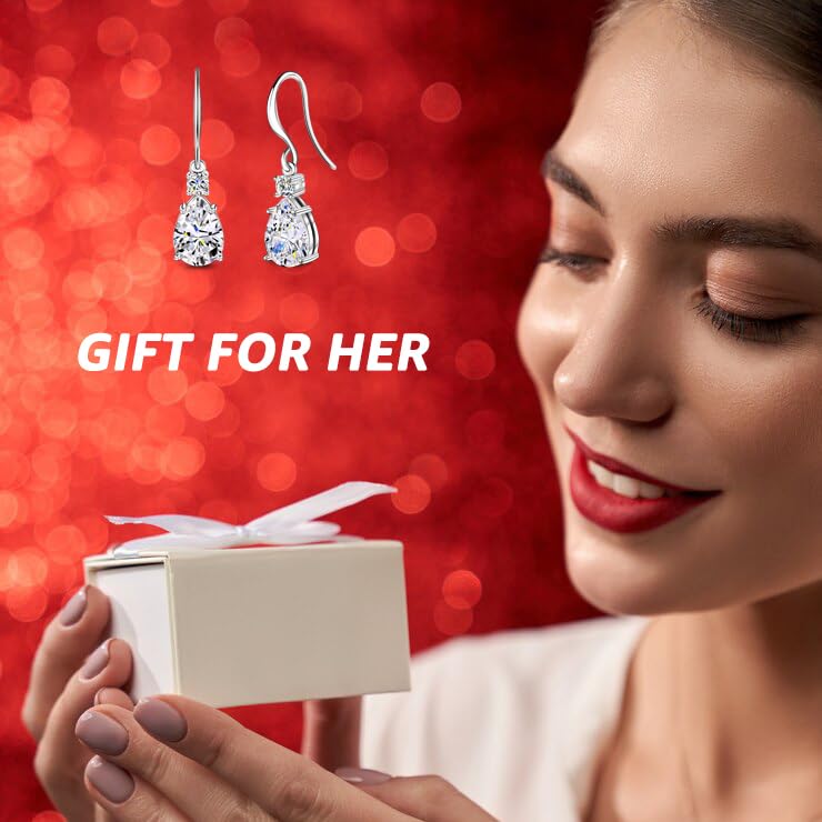 2.0ct Moissanite Stud Earrings, 925 Sterling Silver Teardrop Dangle Drop Earrings for Women Hypoallergenic, Women's Jewelry Gift