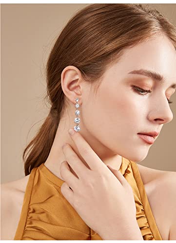 Cubic Zirconia Dangle Earrings Wedding - Streling Silver Bridal Jewelry for Bride Bridesmaids Round CZ Crystal Rhinestone Drop Earrings for Women Party Prom 7