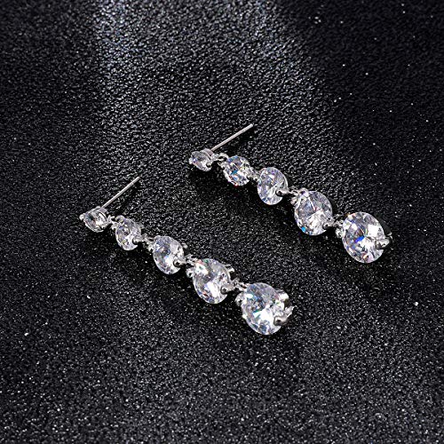 Cubic Zirconia Dangle Earrings Wedding - Streling Silver Bridal Jewelry for Bride Bridesmaids Round CZ Crystal Rhinestone Drop Earrings for Women Party Prom 4