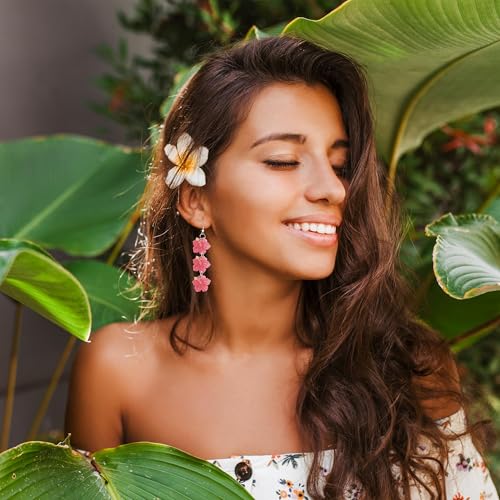 Y1tvei Summer Glitter Acrylic Earrings - 9 Pairs Hawaiian Flamingo Sea Turtle Sunflower Coconut Tree Dangle Set, Aesthetic Animals Plants Drop Jewelry Gifts for Girls Women Daily Beach Tropical Party
