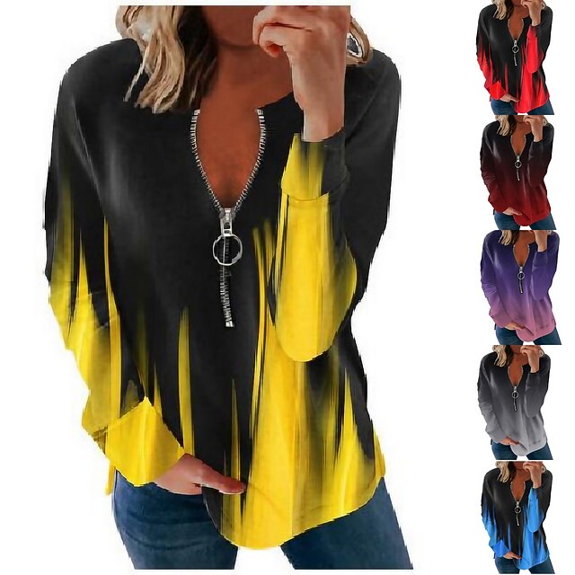 Women's Quarter Zipper Sweater Hoodie Graphic Color Gradient Printing Streetwear Basic Long Sleeve Round Neck Crewneck Daily Sports Gradient red Gradient blue Gradient wine red Gradient Purple 9