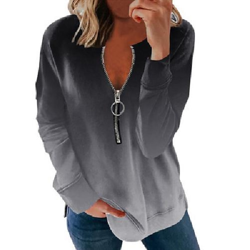 must-have ! Women's Quarter Zipper Sweater Hoodie Graphic Color Gradient Printing Streetwear Basic Long Sleeve Round Neck Crewneck Daily Sports Gradient red Gradient blue Gradient wine red Gradient Purple