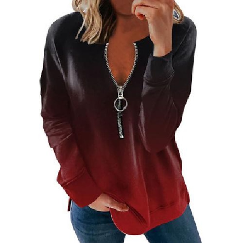 More information about Women's Quarter Zipper Sweater Hoodie Graphic Color Gradient Printing Streetwear Basic Long Sleeve Round Neck Crewneck Daily Sports Gradient red Gradient blue Gradient wine red Gradient Purple