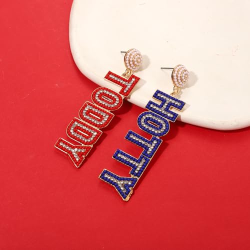 Material: ZincMetal type: ZincBack Finding: Lever Back, Screw BackEarring design: DangleGem type: No GemstoneHOTTY TODDY! Add some team spirit to your wardrobe with these “Game Day” Beaded Earrings. Featuring bold words ‘HOTTY TODDY’ dangling from a beaded round post, decorated with vibrant white, red and blue beads and rhinestone, these football earrings are the perfect finishing touch for any game day outfit. Trendy beaded game day earrings are the perfect football accessory for yourself or as a gift for your favorite football mom!Whether wearing them to the big game, a themed party, or just out and about, these football Earrings will surely draw attention and start conversations. They are a fantastic way to support your favorite team and show off your love for the game stylishly and uniquely. Pair them with a white top and denim shorts to get ready for lots of touchdowns this football season!Show your love for the game when accessorizing your Game Day look with these uniquely bead football earrings! The perfect accessory to get you fired up for the playoffs this season! Weather you are sporting these to watch a game at home or out at the field to cheer on your favorite baseball player, these funny team spirit earrings are the perfect to show your team support.It suitable for Sports Game, wear party, game day, tailgate party, Date Night or any special events and more.Game Day fashion just got that much better! These Rhinestone Game Day earrings are THE statement earring that will showcase your school/team spirit. Made of premium quality rhinestones, beads and alloy, nickel free, lead free, lightweight and comfortable for all day wear. Size: about 3.1inch. These sports fan earrings are versatile enough to wear to any sports event or to add color to any casual outfit.Cheer on your team with these fashion football team earrings! These funny sports earrings are the perfect accessory for game days and to show off your team spirit! Also they are the perfect gifts for baseball, soccer, football, volleyball, basketball fans, football mom, football coach, or go to your tailgate party and support your favorite football team wearing our gorgeous and fashionable jewelry gift! Any problem, just contact us freely for a refund or a replacement. Perfect for everyday use. first-class materials and excellent craftsmanship ensure long-lasting durability.