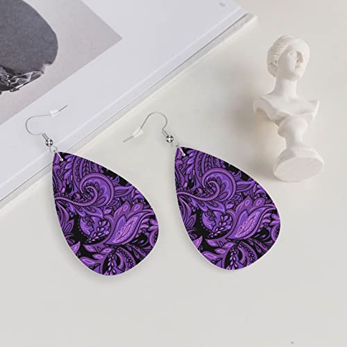 Purple Paisley Bandanna Faux Leather Teardrop Earrings for Women Drop Dangle Earrings Gift