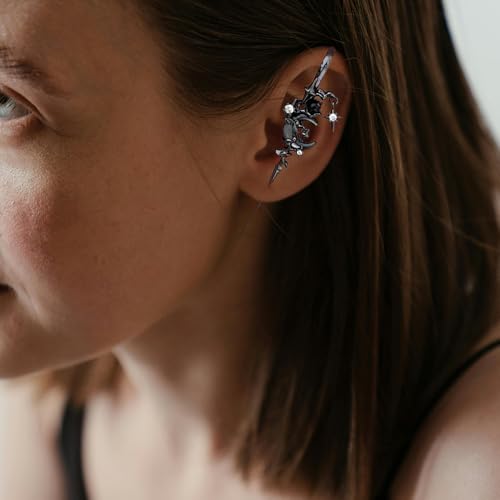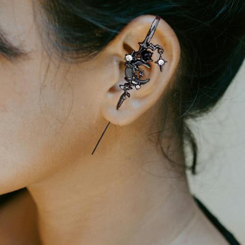 Myth of The Moon Ear Hook Earrings Creative Star Moon Earrings for Women Moon Ear Hook Needle Piercing Earring Gothic Moon Climber Crawler Earrings Punk Halloween Moon Jewelry