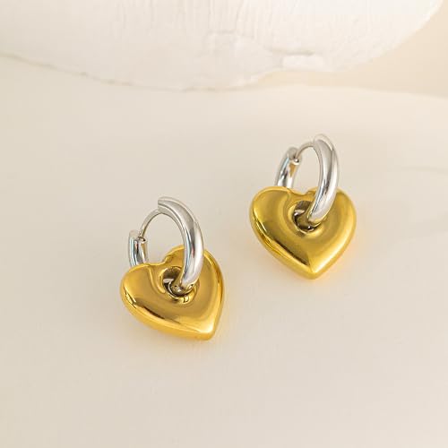 Chunky Heart Hoop Earrings for Women Two Tone Love Statement Drop Earrings Trendy Stainless Steel Huggie Earrings Dainty Jewelry Gifts 6