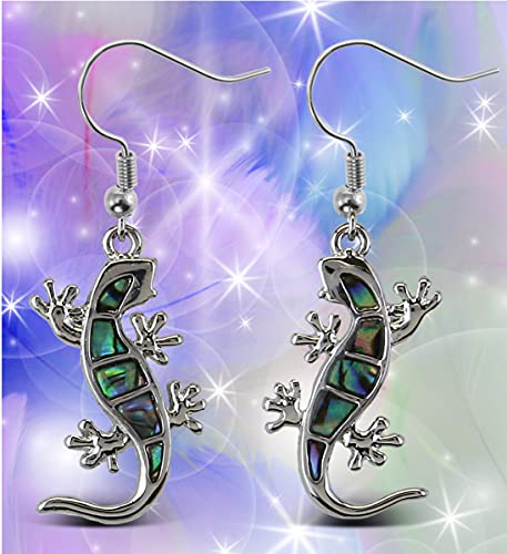 More information about Gecko Earrings Jewelry - Authentic Dangle Hook Earrings Made with Natural Paua Abalone Shell - special Colorful Jewel For Women & Teens For Daily, Casual & Formal Occasions