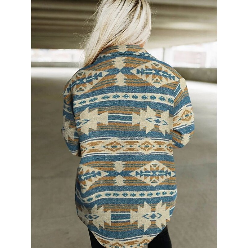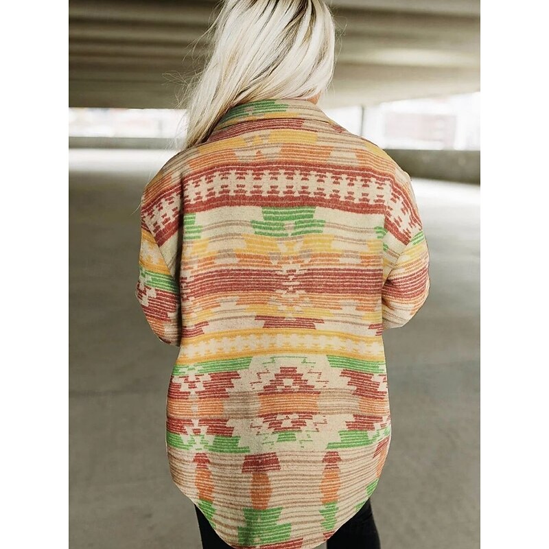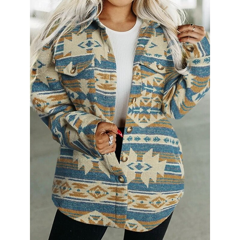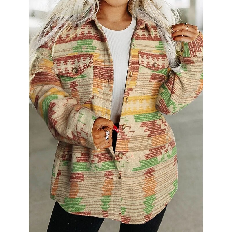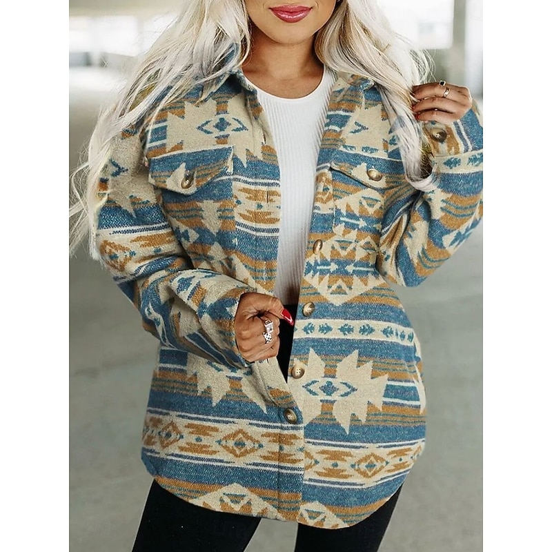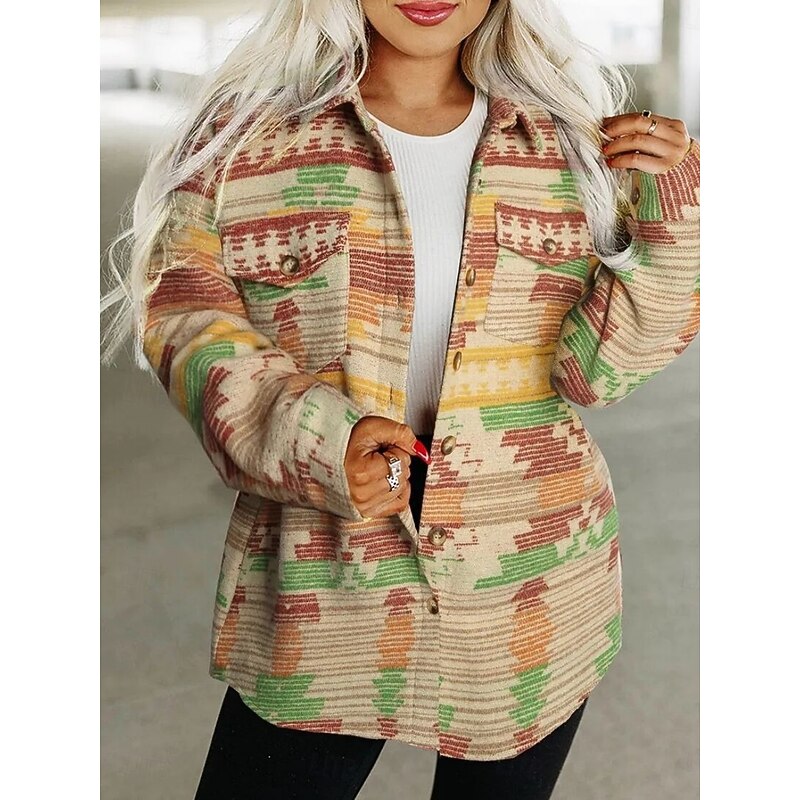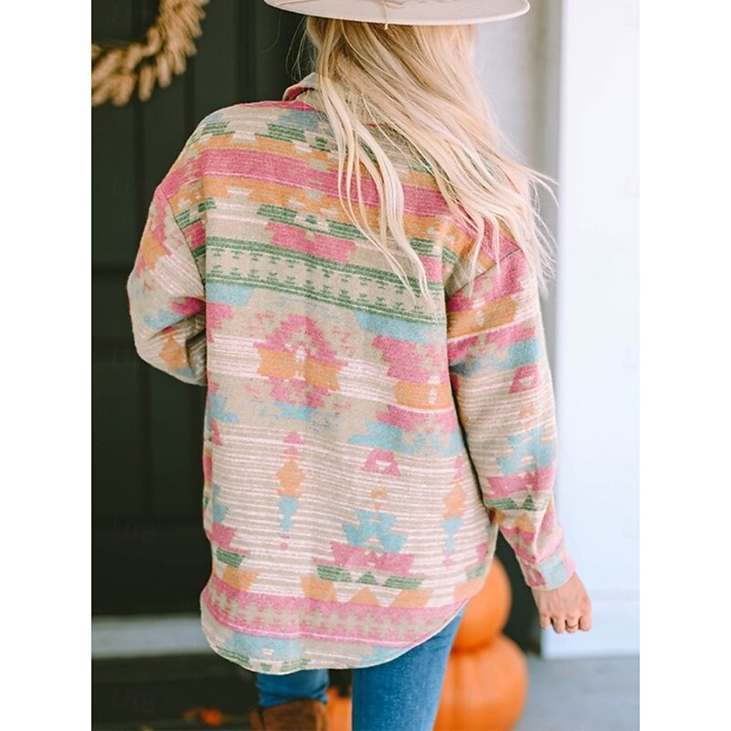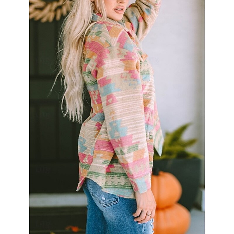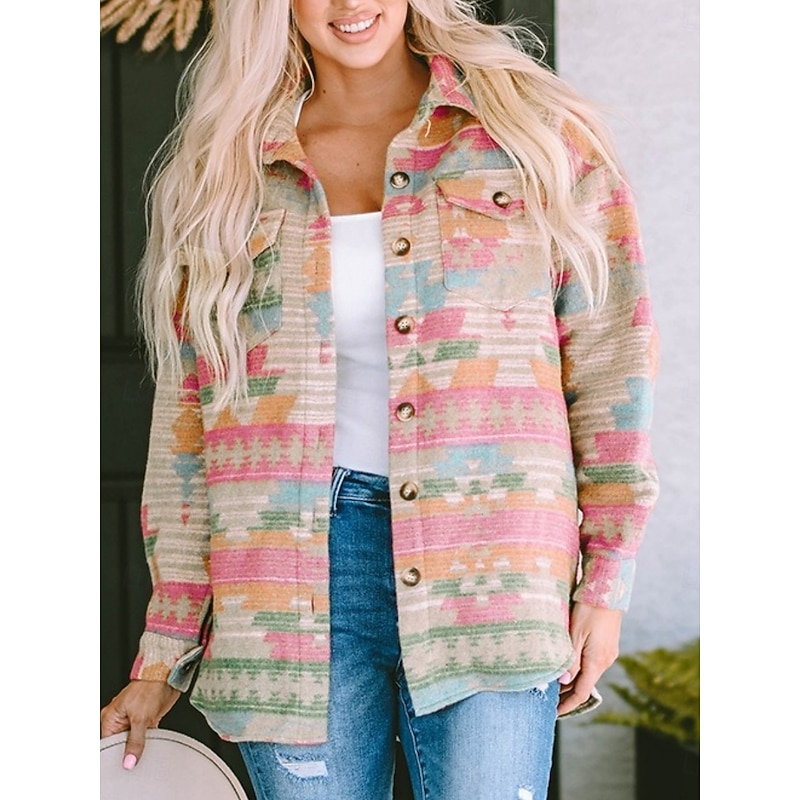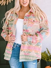 Why Choose Women's Casual Jacket relaxing Breathable Pocket Buttons Print Fashion Casual Geometric Vacation Street Casual Daily Wear Single Breasted Regular Turndown Regular Fit Long Sleeve Outerwear Pink?
