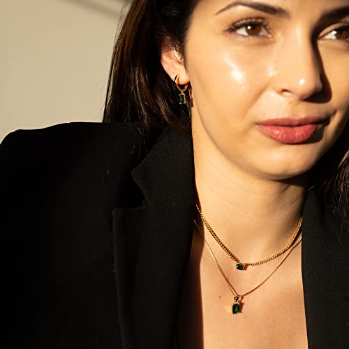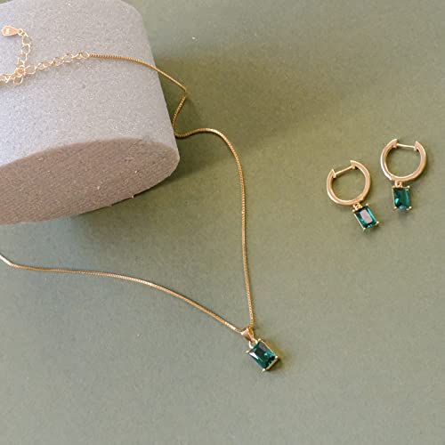 Why Choose Baguette CZ Pendant Necklace | 14K Gold Plated Sterling Silver | Emerald Baguette Pendant Dainty Box Chain Necklace 18''?