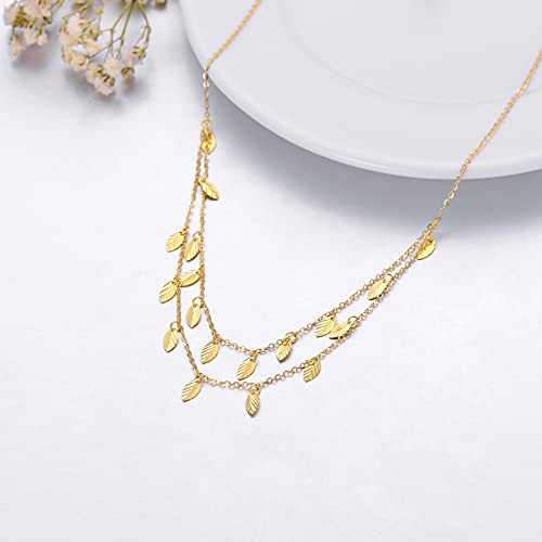 SISGEM 18k Gold Dangling Leaves Station Layered Necklace for Women, Fine 18 Karat Gold Jewelry Gifts for Her, 16-17 Inches