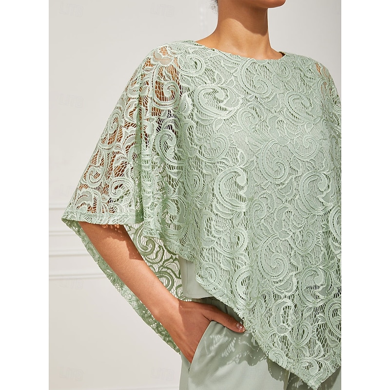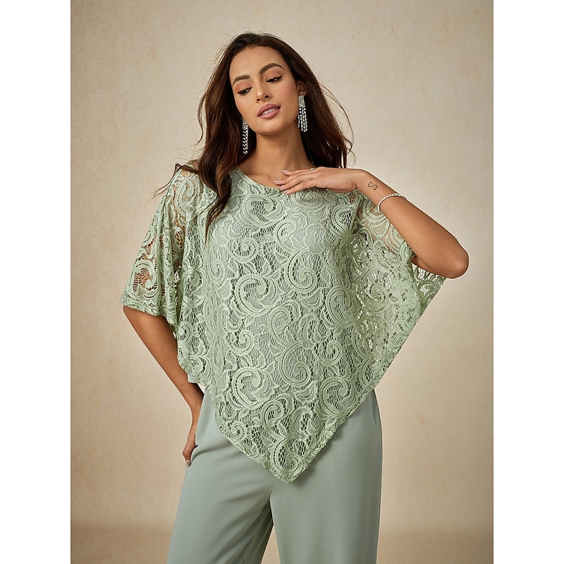 More information about Women's Blouse Dressy Tops Plain Elegant Half Sleeve Crew Neck Regular Tops Wedding Guest Daily Lace Patchwork Layered Sage Green Summer Spring