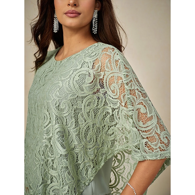 Women's Blouse Dressy Tops Plain Elegant Half Sleeve Crew Neck Regular Tops Wedding Guest Daily Lace Patchwork Layered Sage Green Summer Spring 4