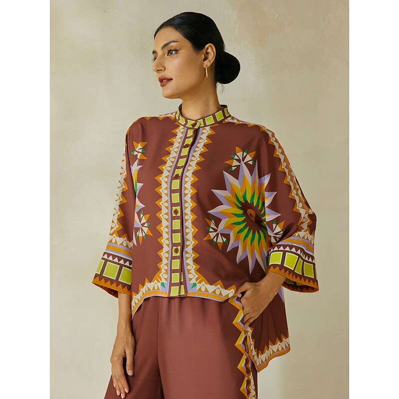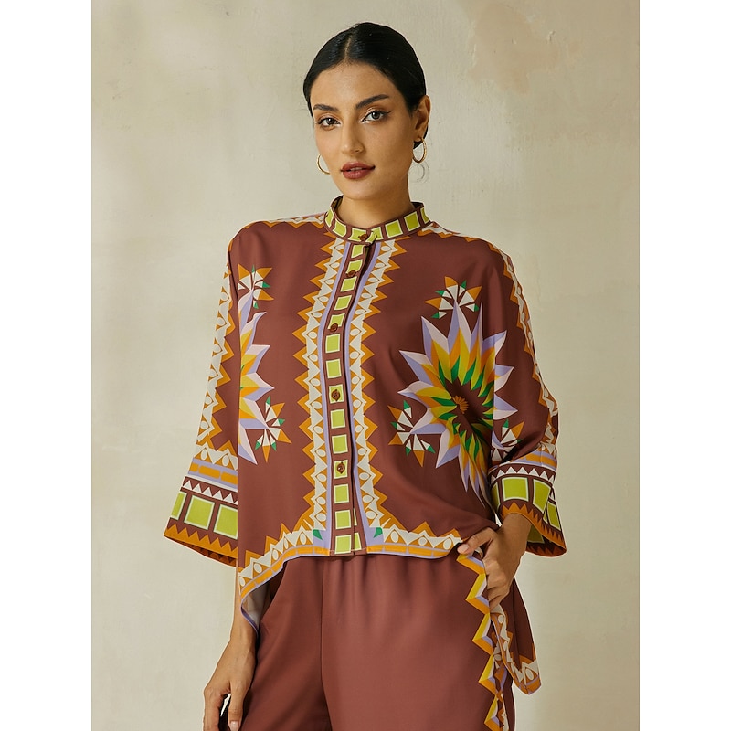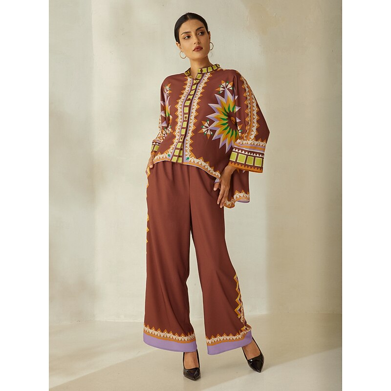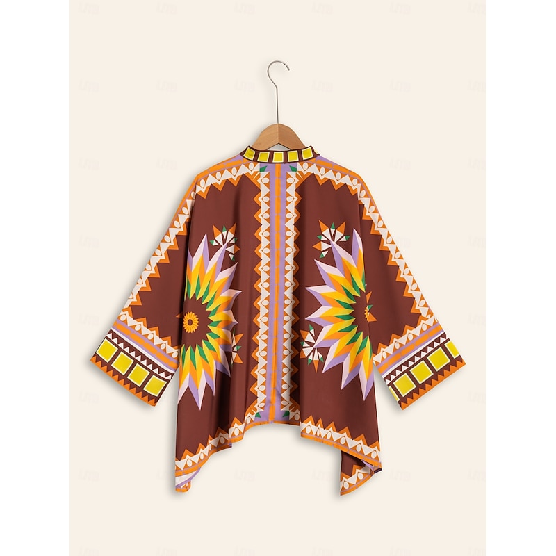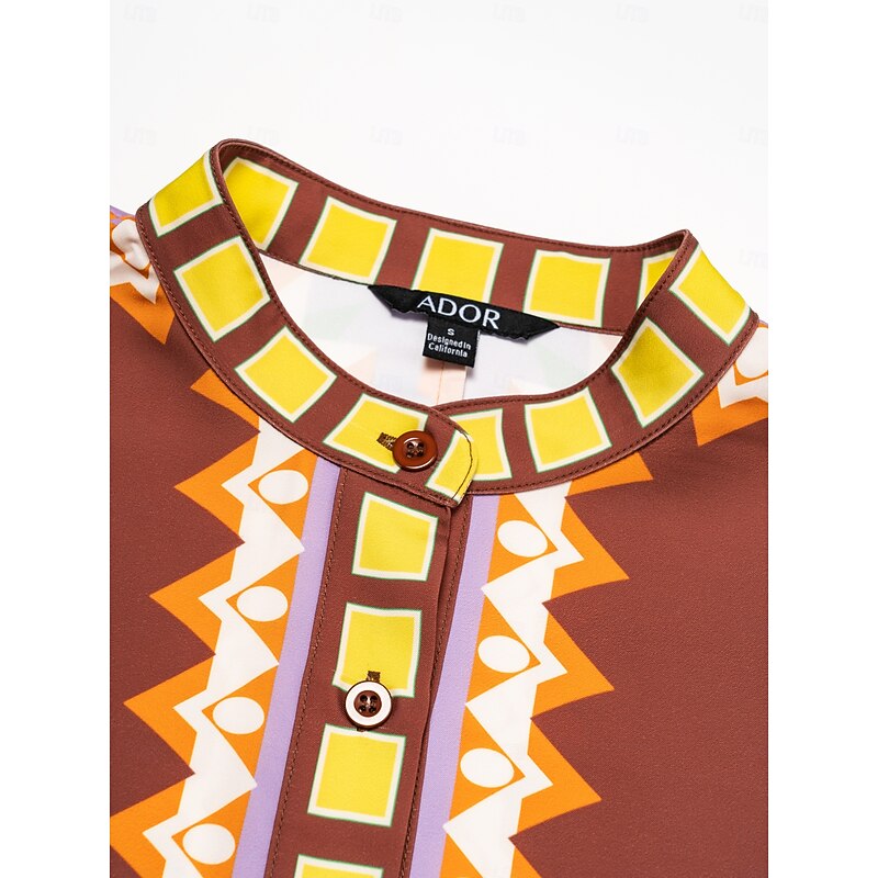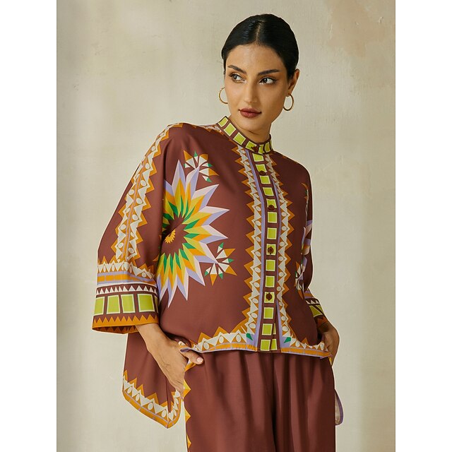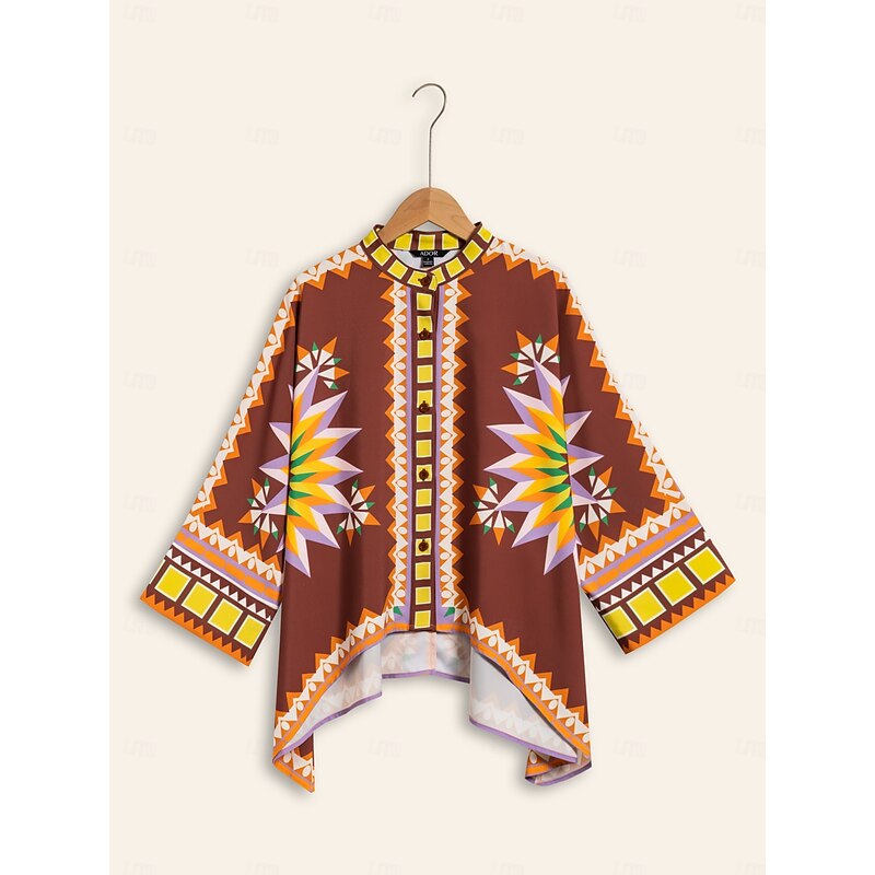 This Women's Shirt Brown Vintage Bohemian Geometric Graphic Satin Silk Magyar 3/4 Sleeve Crew Neck Casual Daily Weekend Vacation Spring Fall combines elegant design with practical functionality. Every detail has been carefully considered to ensure you get the top possible experience. The top-grade construction means this product will serve you well for years to come.